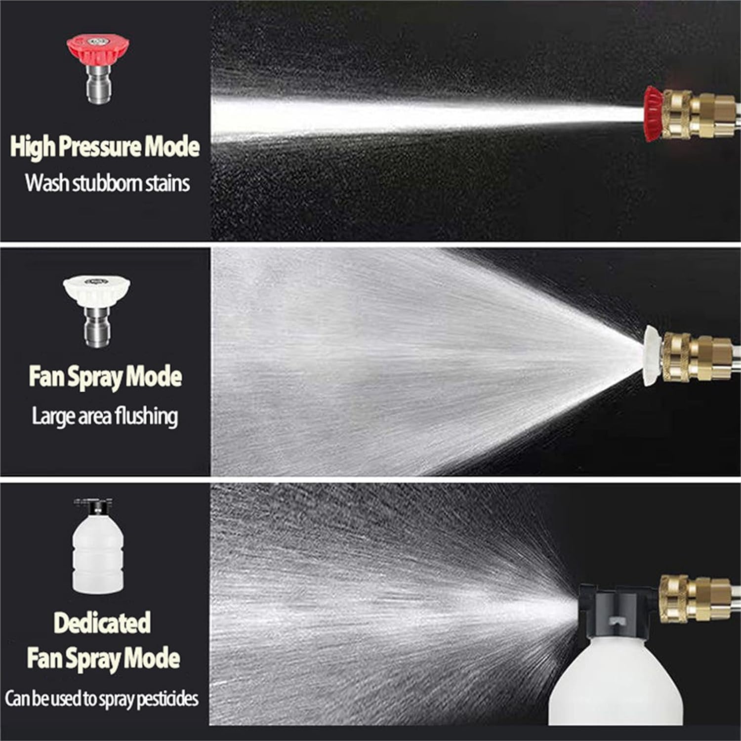 يتضمن مسدس غسل السيارات مقبضًا مريحًا يسهل السيطرة والتحكم أثناء الاستخدام، بالإضافة إلى زر لتعديل قوة ضغط المياه بحسب الحاجة. يمكن لهذا المسدس توليد ضغط مياه عالي القوة، مما يساعد في إزالة الأوساخ والشوائب المتراكمة على سطح السيارة بسهولة.